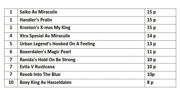 | N UCH Saiko Av Miraculix | N UCH VCH Handler's Pralin | C.I.E. DK N UCH Kronion's X-mas My King |